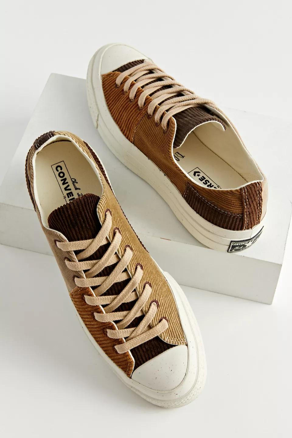 Classic low top sneakers by Converse and Beyond Retro. Patchwork look upper with a lace up closure. Fitted with a rubber toe cap and textured tread at the rubber sole.