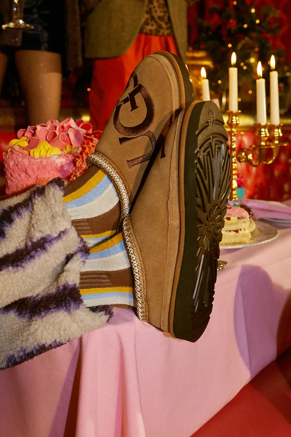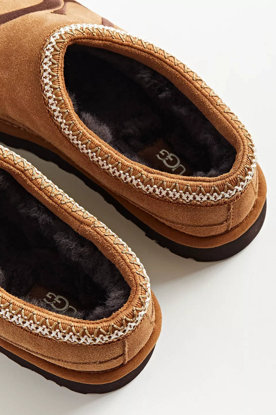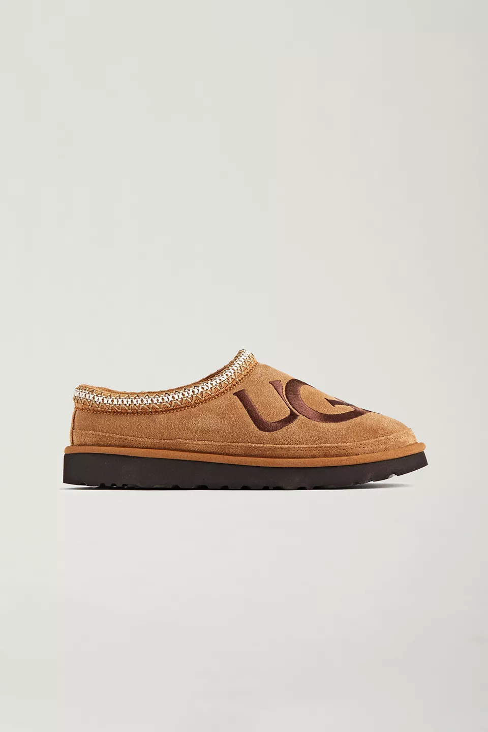 Designed with a lightweight but durable sole for indoors and out, this classic UGG slipper is a versatile must-have. Soft suede upper in a slip-on silhouette with plush natural wool insole and sheepskin lining. Updated with a bold logo at the top. Set on a Treadlite by UGG™ outsole for added traction and finished with an embroidered Tasman braid.