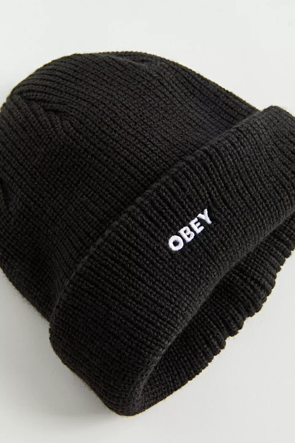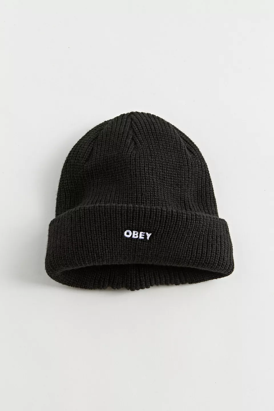 Foldover cuff beanie by OBEY in a ribbed fabrication and topped with logo text at the front.