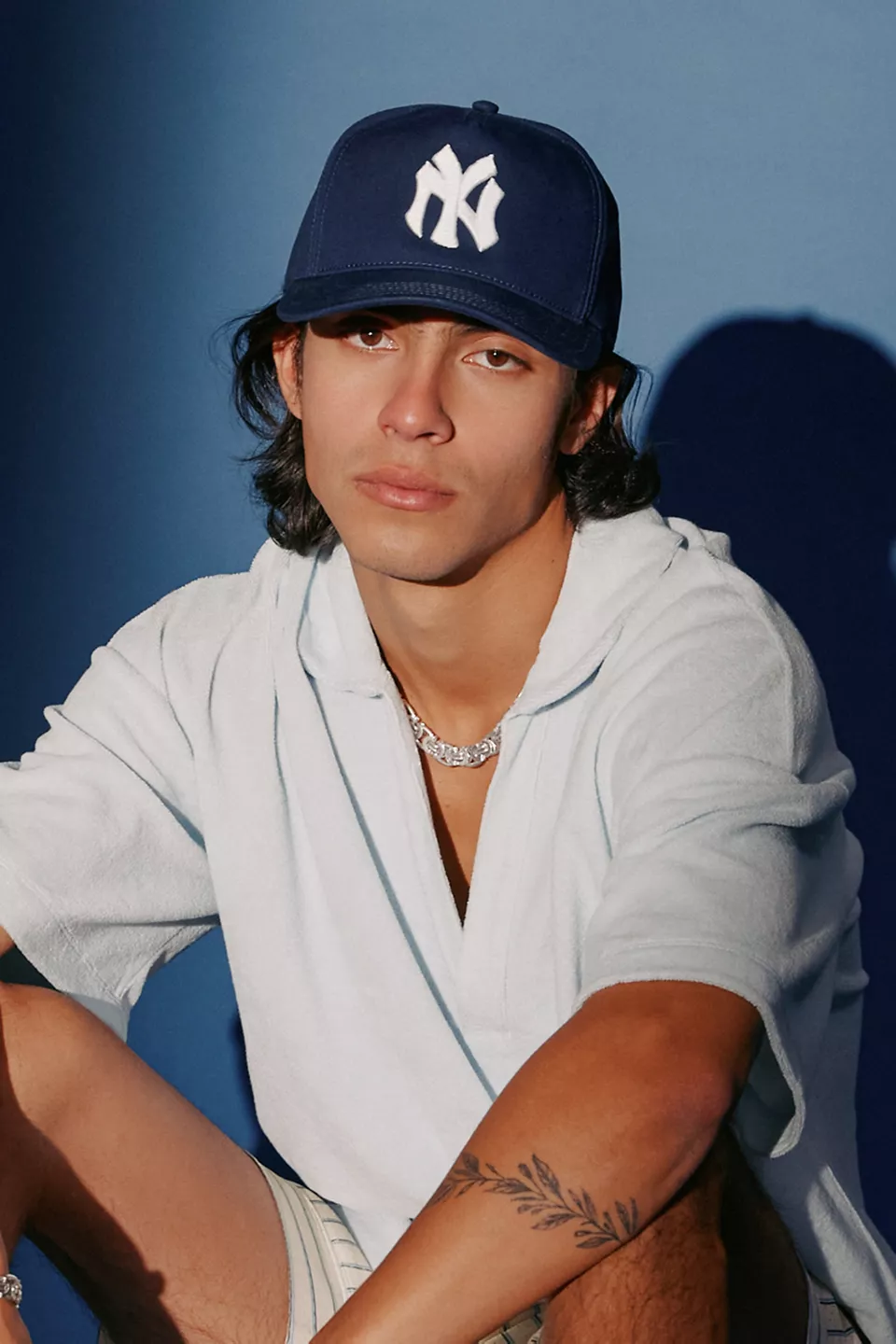 Embroidered New York Eagles hat by American Needle. Paneled construction with an adjustable snap closure at the back and a curved brim.