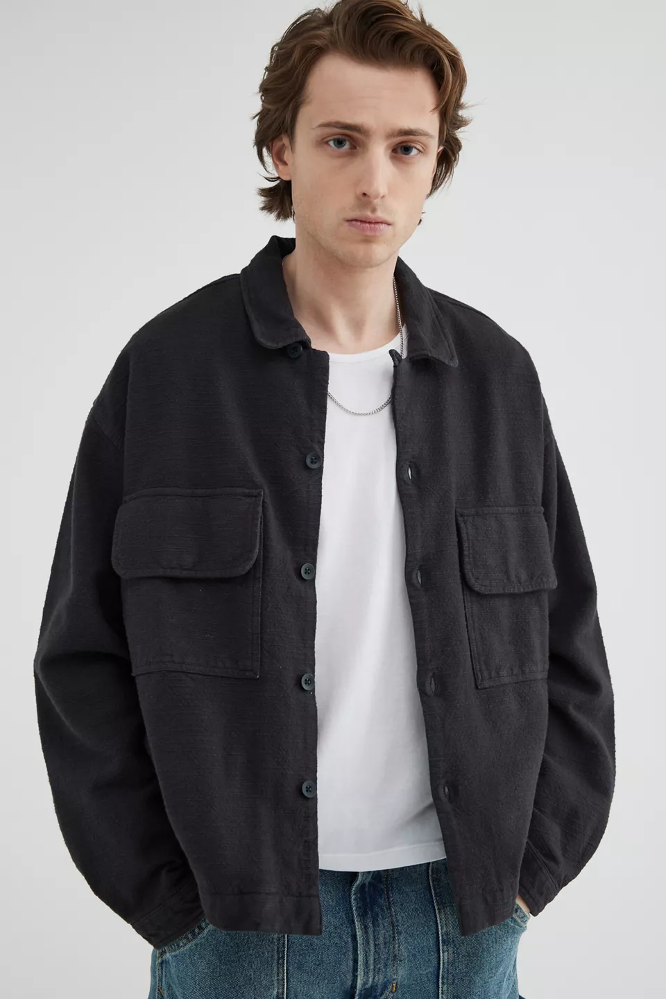 Textured cotton shirt jacket by Standard Cloth. Fitted with a button closure at the front and notched tab collar. Topped with flap pockets at the chest. Urban Outfitters exclusive. Standard Cloth is committed to using quality materials, offering great fits and leaving no detail unconsidered. These are your new favorites.